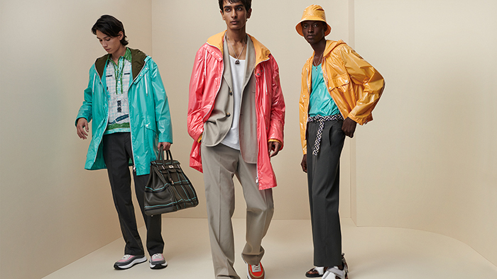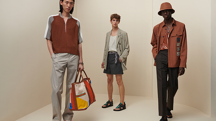 男装系列唤起对当代绅士形象的无限畅想。Berlingot 帆布、磨绒小牛皮、密织绉纱棉等材质打造衬衫式夹克与短裤组合、派克大衣、轻便风衣等单品,服装色彩承载甜美诗意。